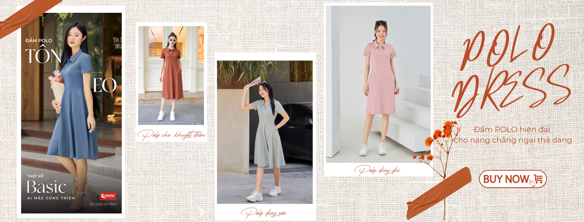 Đầm polo chất liệu cotton dáng dài xẻ gấu cổ đức trẻ trung