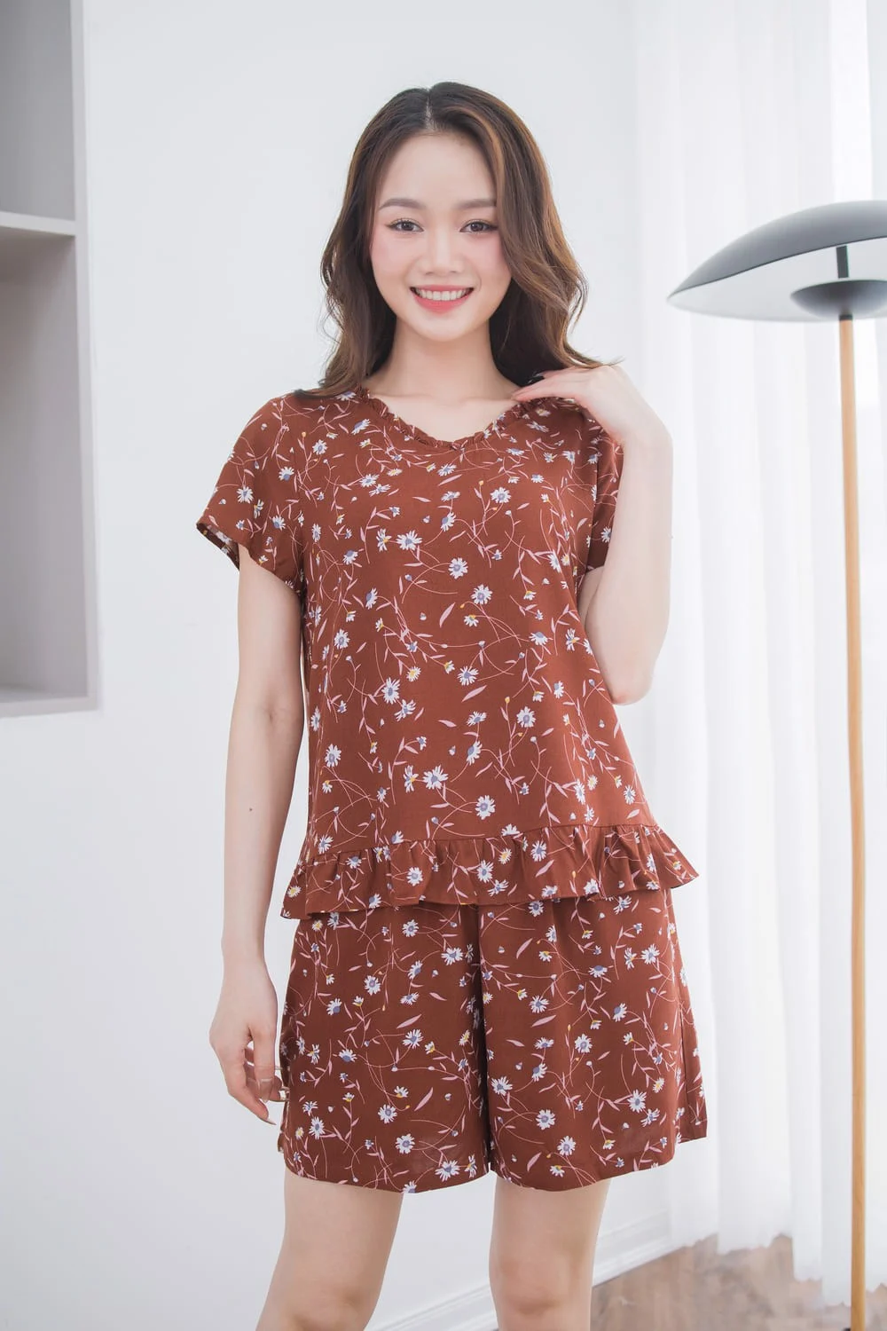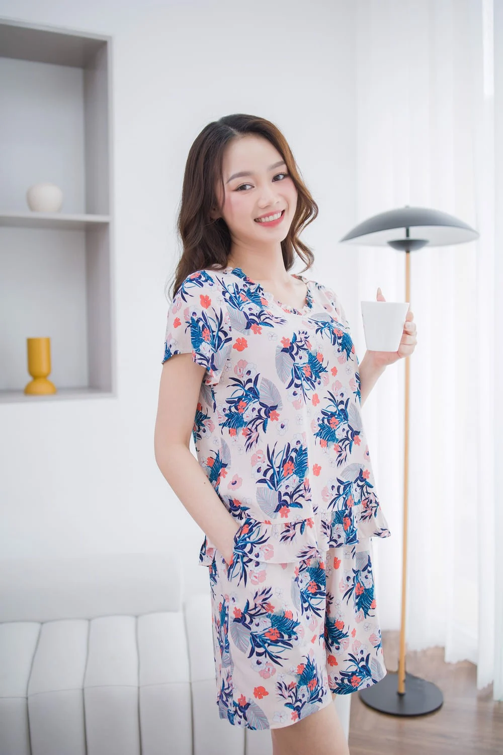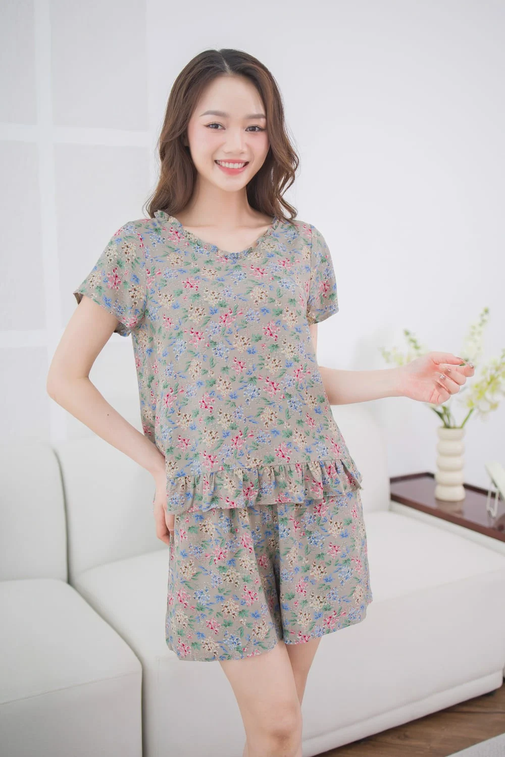 1. Thông tin sản phẩm: Đồ Bộ Nữ SELEN Chất Lanh Nhung Cao Cấp Quần Lửng Cộc Tay Xếp Bèo Cổ Có Lé Họa Tiết