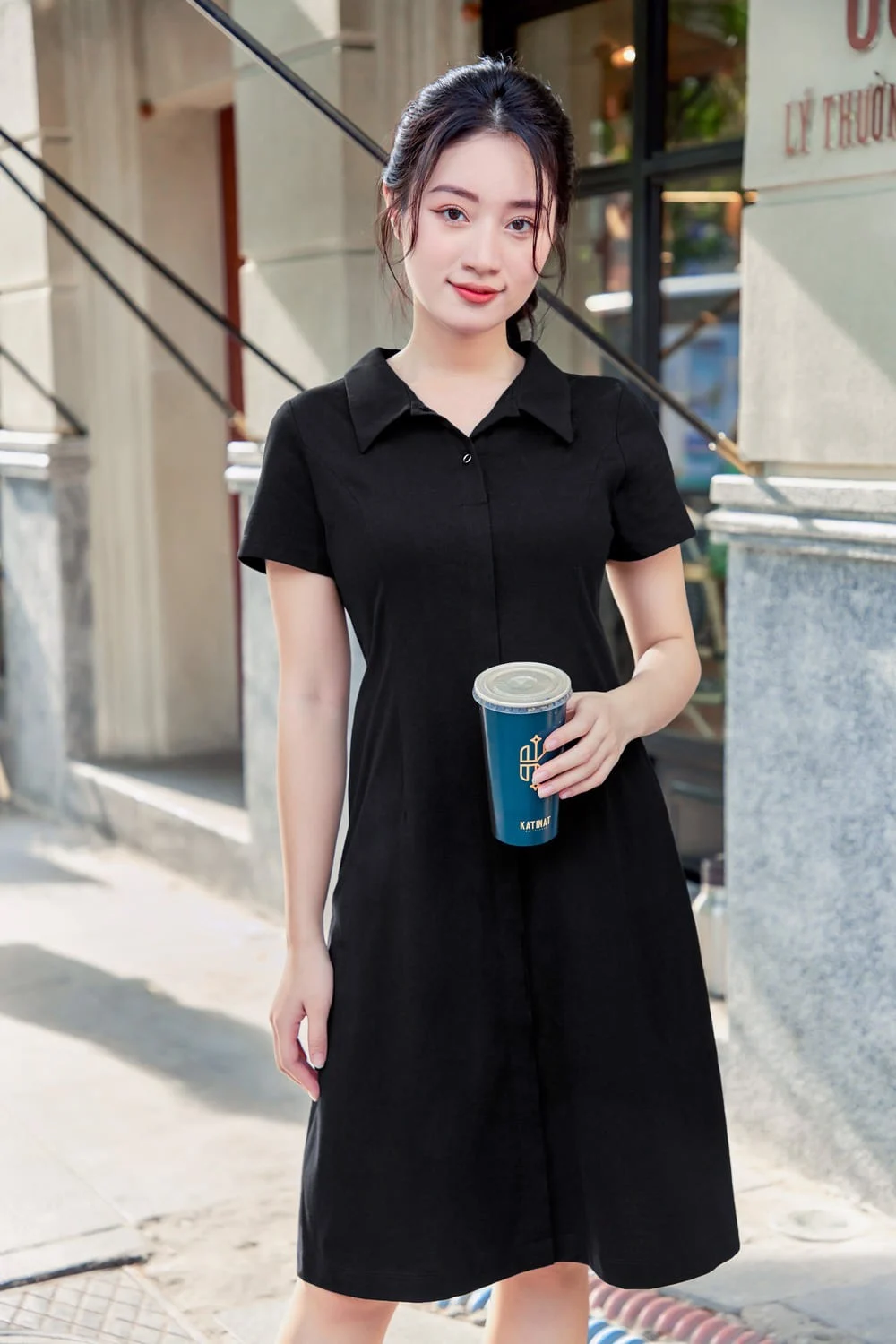 Đầm polo dáng A Selen chất cotton, cổ đức không chân nẹp giả lịch sự